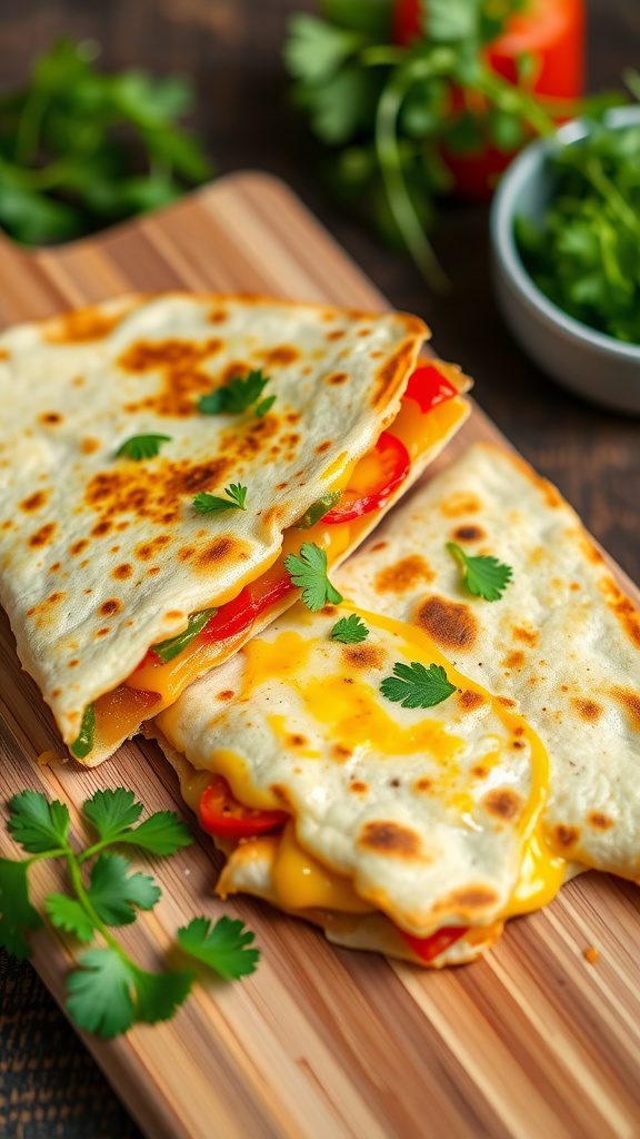 This quesadilla is all about that cheesy goodness, enhanced by the crunch of fresh peppers and the aroma of herbs. You can customize it with your favorite toppings or sauces to make it even more special. Get ready for a melty, satisfying meal!