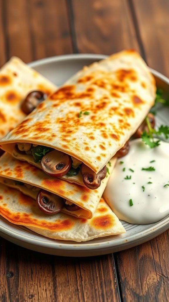 In just a few simple steps, you can create a delicious meal that brings together the rich flavors of sautéed mushrooms and the nutty taste of Swiss cheese, all encased in a perfectly toasted tortilla. Serve it with a side of sour cream or your favorite dipping sauce for an extra layer of flavor!