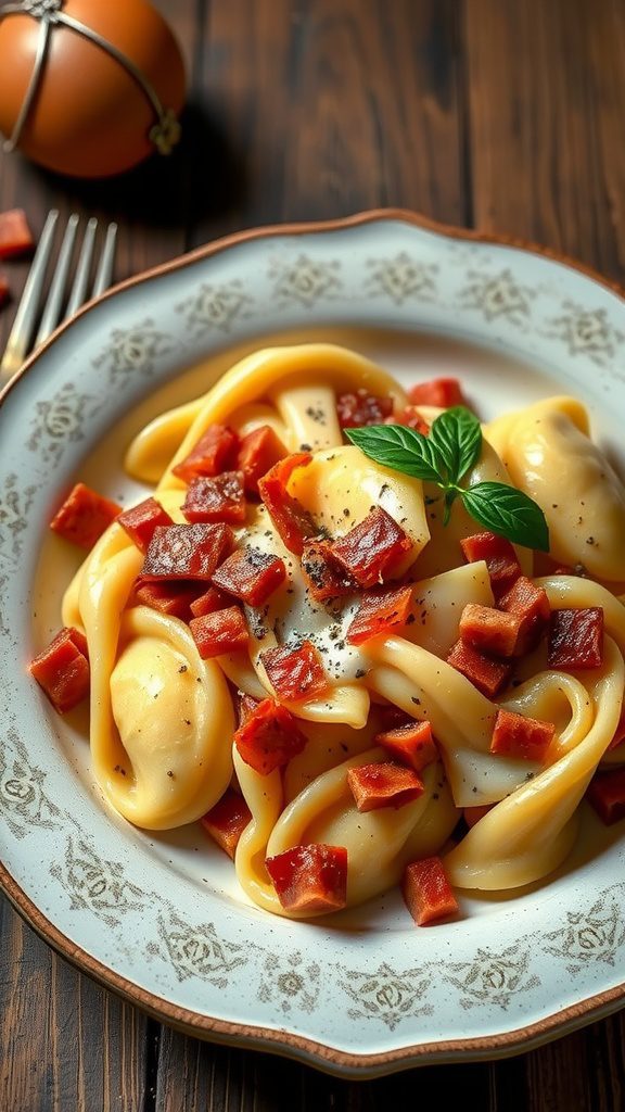 - Serve: Garnish with fresh parsley and additional Parmesan if desired. Enjoy your delightful Ravioli Carbonara!