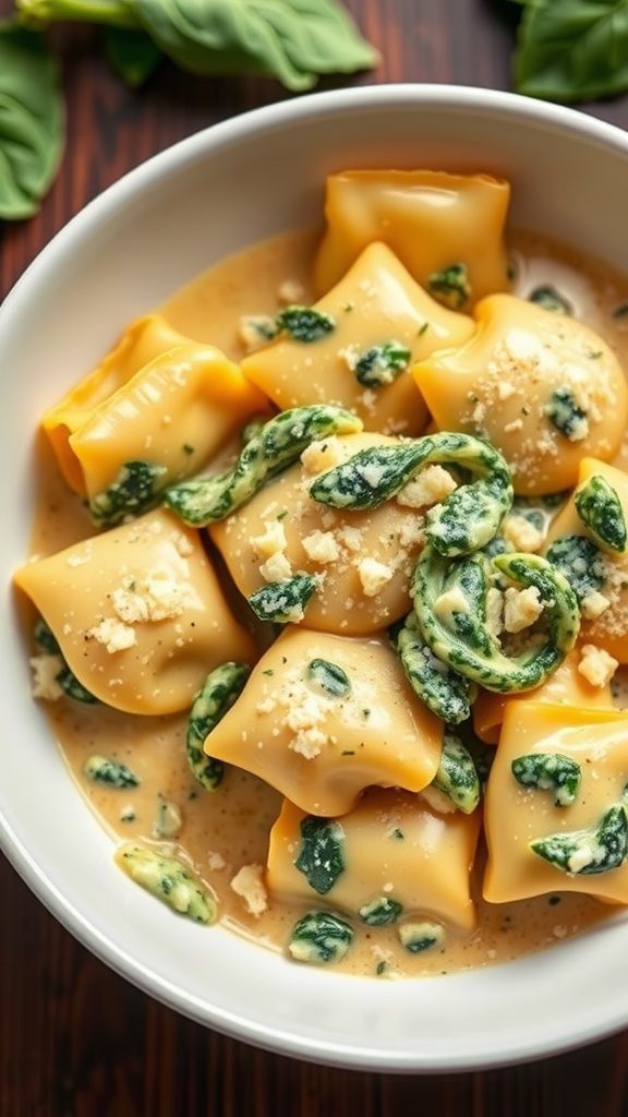 Spinach and Ricotta Ravioli in Creamy Alfredo Sauce