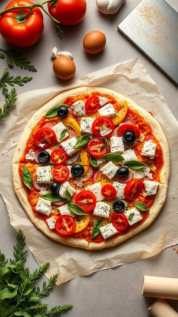 - Add Toppings: Spread pizza sauce over the dough, then sprinkle with mozzarella cheese. Add tomatoes, bell peppers, and olives as desired. Finish with more cheese if you like!