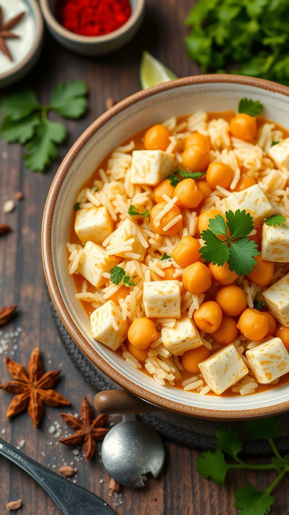 Coconut Curry Rice with Chickpeas is a delightful dish that brings a taste of the tropics right to your dinner table. Creamy coconut milk blends beautifully with aromatic spices, creating a dish that is both comforting and refreshing. The chickpeas add a hearty texture and boost the protein content, making this a wholesome meal that can be whipped up in no time.