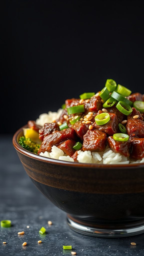 - Serve: Place the cooked rice in bowls, top with the beef and broccoli mixture, and garnish with green onions and sesame seeds if desired.