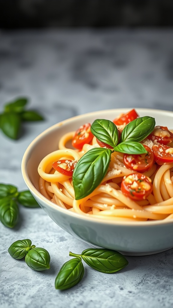 - Serve: Plate the pasta and top with additional basil and Parmesan if desired. Enjoy your meal!