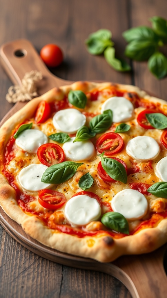 Margherita pizza is a classic that brings together the freshness of basil, the sweetness of tomatoes, and the creaminess of mozzarella, all on a perfectly crispy crust. It’s a delightful dish that’s simple to make and sure to please the whole family. With just a handful of ingredients, you can whip up this tasty meal in about 30 minutes!