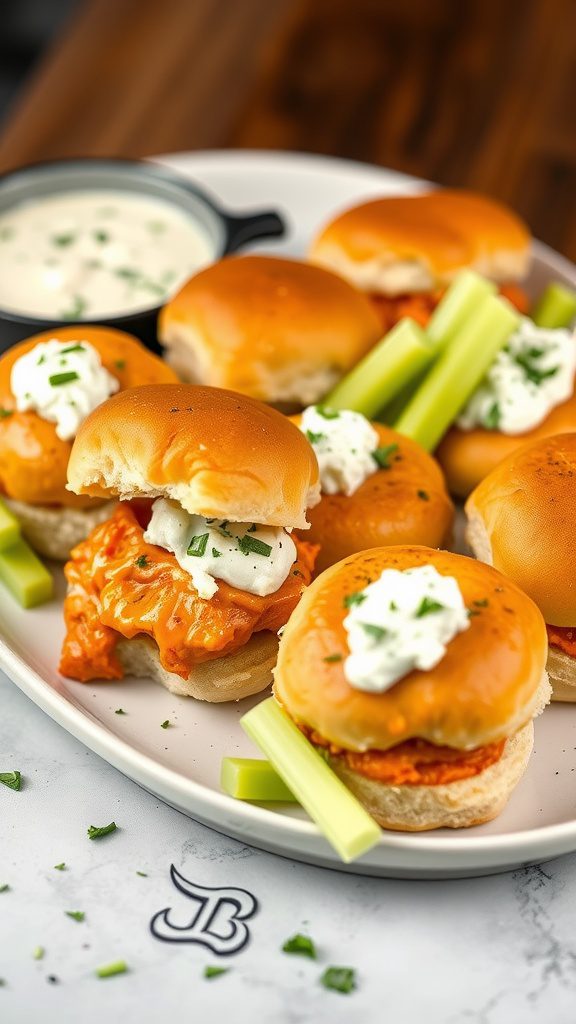 - Assemble Sliders: Spoon the buffalo chicken mixture onto each bun bottom. Top with crumbled blue cheese and a drizzle of blue cheese dressing.
