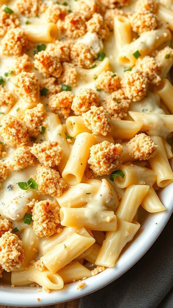 The creamy texture of the sauce pairs beautifully with the pasta, while the baked topping adds a satisfying crunch. Plus, it’s easy to customize with your favorite veggies or spices. Get ready to enjoy this comforting meal that the whole family will love!