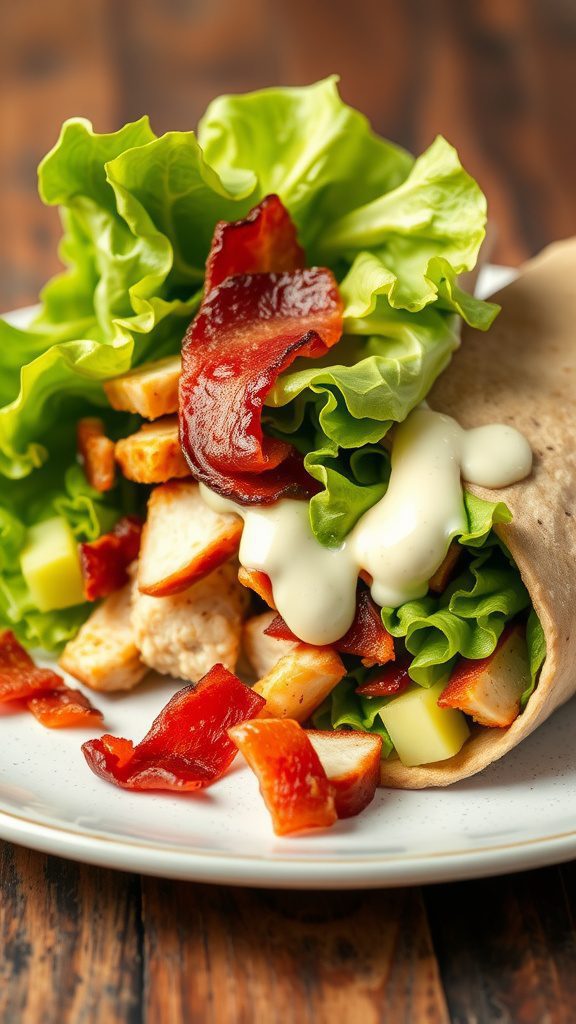 Chicken Caesar wraps with crispy bacon are a fantastic way to use leftover rotisserie chicken. These wraps are bursting with flavors, combining tender chicken, crunchy lettuce, and crispy bacon, all drizzled with creamy Caesar dressing. It’s a delightful and satisfying option for lunch or a quick dinner.