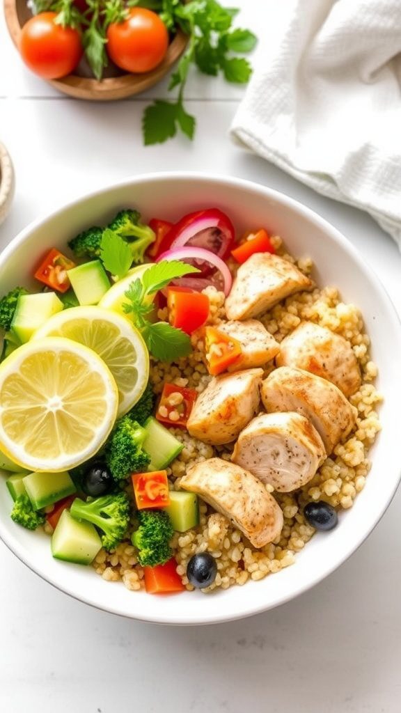 - Enjoy your refreshing Lemon Garlic Chicken Quinoa Bowl!