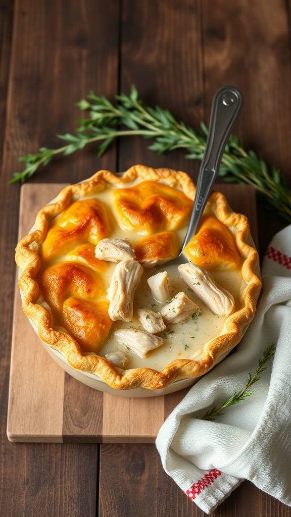 Chicken pot pie is the perfect comfort food, especially during autumn evenings. Its creamy filling, packed with tender chicken and hearty vegetables, is enveloped in a flaky golden crust that crumbles with each bite. This dish is satisfying and evokes a warm, homey feeling, making it ideal for chilly nights.