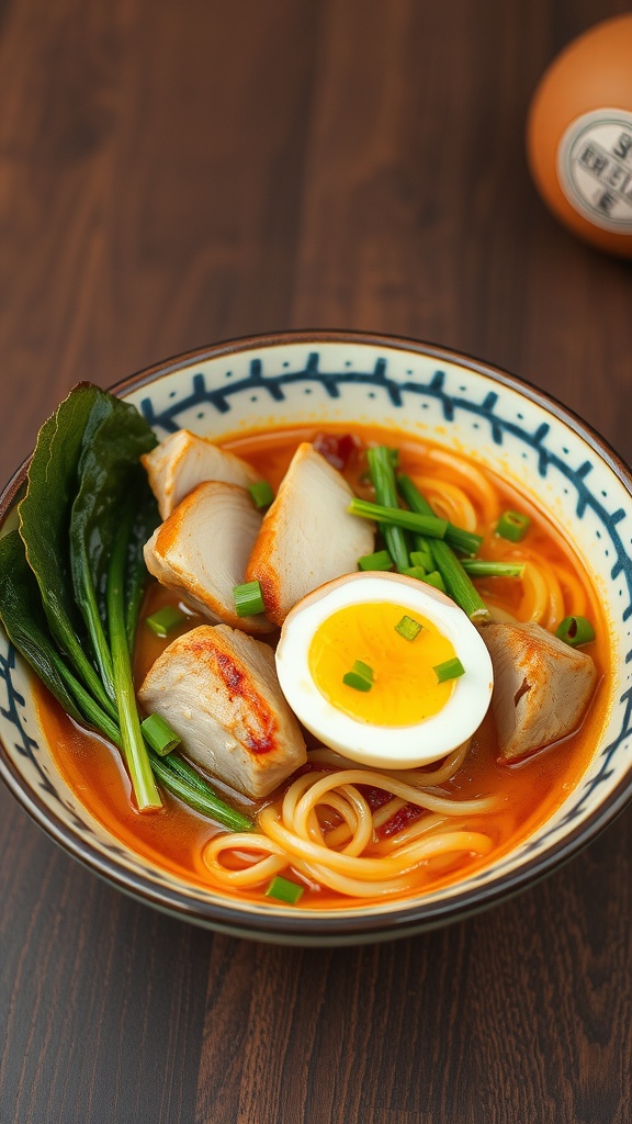 - Serve: Ladle the ramen into bowls. Top each bowl with a soft-boiled egg, remaining green onions, and a drizzle of chili paste if desired. Enjoy!