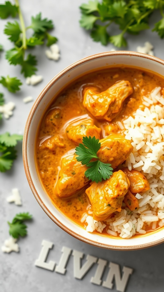 - Serve the curry over cooked rice, garnished with fresh cilantro.