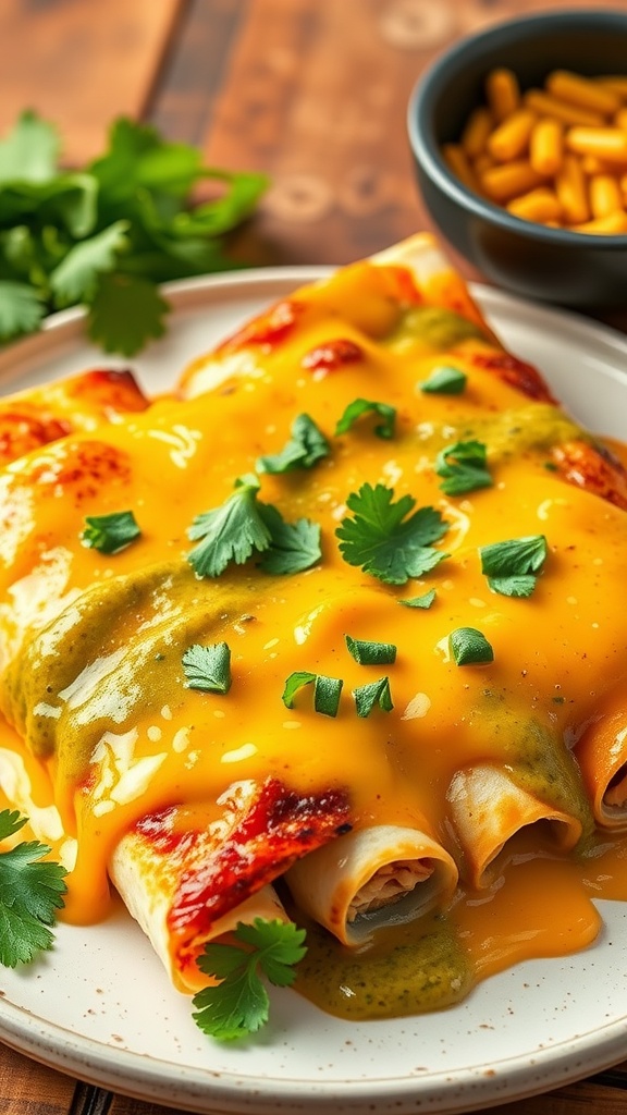 The combination of tender rotisserie chicken wrapped in soft tortillas, smothered in zesty green sauce, and melted cheese creates a comforting dish that feels indulgent yet is easy on the wallet. Serve them with a side of rice or beans for a complete meal!