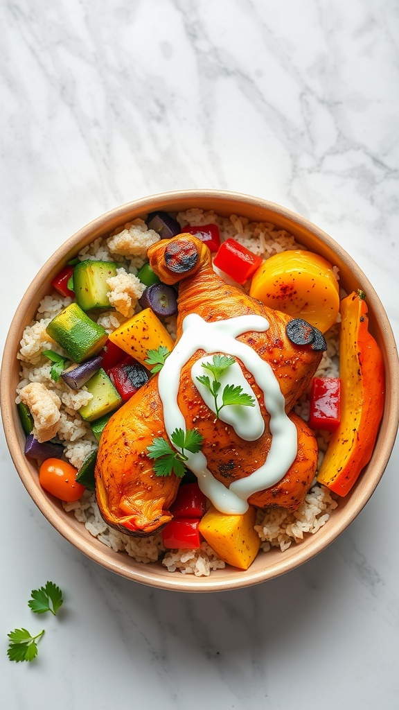 - Assemble the Bowls: In serving bowls, layer the cooked rice at the bottom. Top with the tandoori chicken and sautéed vegetables.