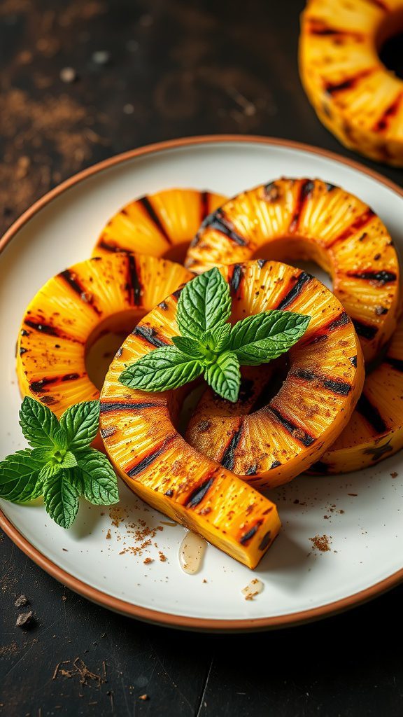 - Serve: Remove the pineapple from the grill and let it cool slightly. Garnish with fresh mint leaves and enjoy warm.