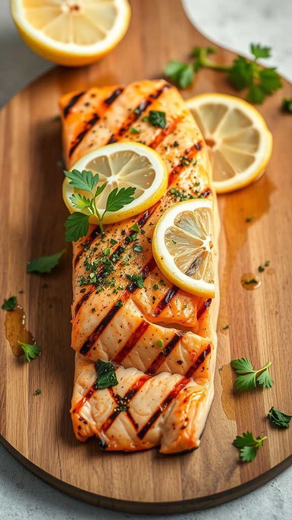 - Serve: Remove from grill and garnish with lemon slices and additional parsley if desired. Enjoy your Lemon Herb Grilled Salmon!