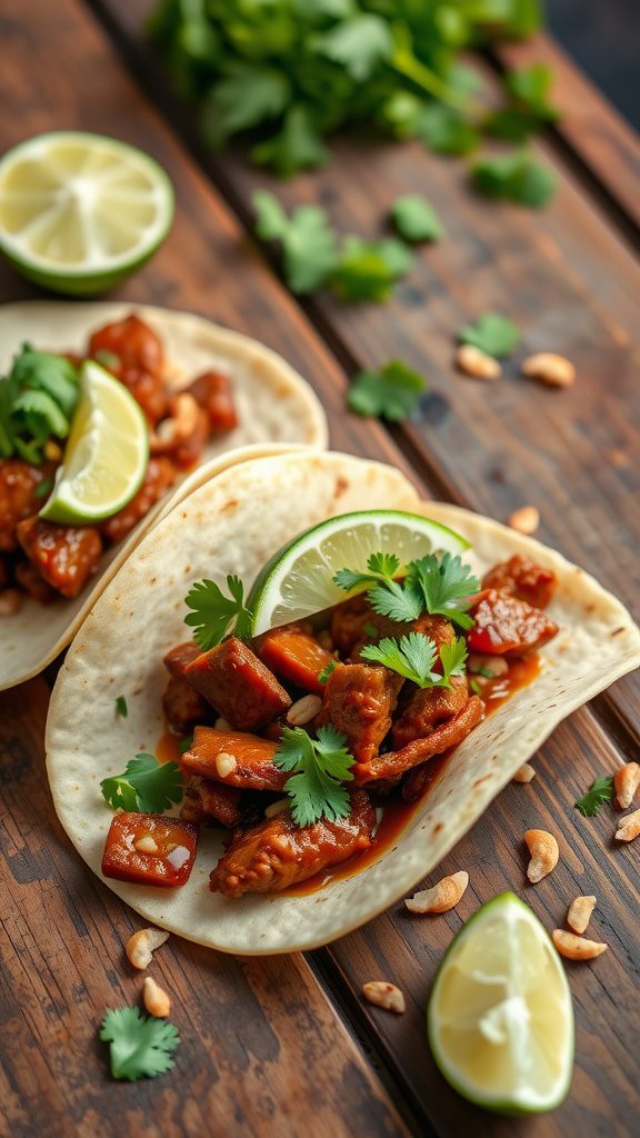 Finish these tacos off with fresh cilantro and a squeeze of lime for added brightness. Whether you’re feeding a crowd or just yourself, these tacos are sure to impress with their unique taste and easy preparation.