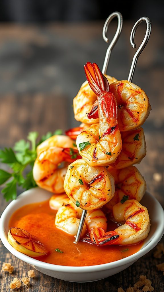 The tender shrimp, grilled to perfection and served with a fresh dipping sauce, create a delicious meal that everyone will love. In just a short time, you can whip up these skewers, offering a delightful balance of smokiness and freshness in every bite!