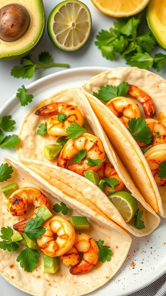 - Assemble the Tacos: Fill each tortilla with grilled shrimp, diced avocado, green bell pepper, and fresh cilantro. Serve with lime wedges on the side.