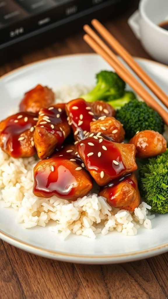 - Assemble the Meal: Serve the teriyaki chicken over a bed of white rice, adding the steamed broccoli on the side. Sprinkle with sesame seeds and chopped green onions if desired.