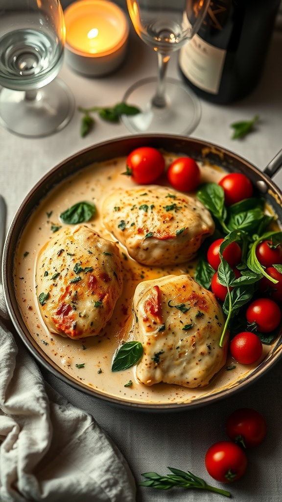 The creamy sauce is savory with a hint of tang from the tomatoes, creating a comforting and satisfying meal. You’ll love how quickly it comes together, allowing you to focus on setting the mood for your special evening.