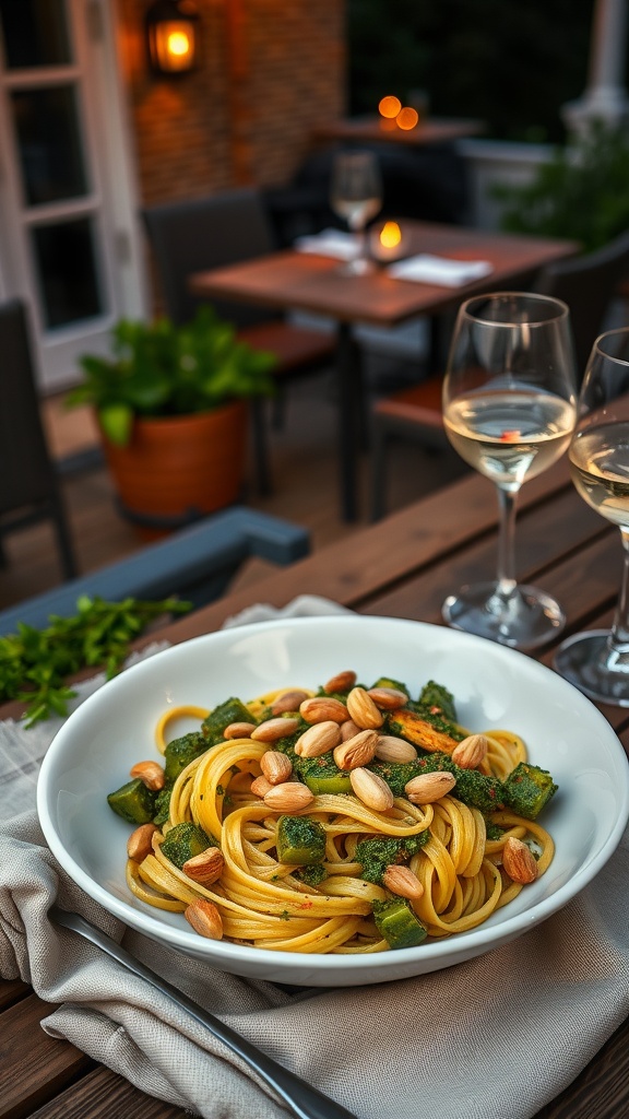 Pesto pasta with grilled vegetables is a vibrant dish that brings together the rich, herby flavors of homemade or store-bought pesto with the smoky sweetness of grilled veggies. It’s quick to prepare, making it perfect for a date night when you want to impress without the stress. The combination of tender pasta, fresh flavors, and a delightful crunch from the vegetables creates a meal that’s both satisfying and sophisticated.
