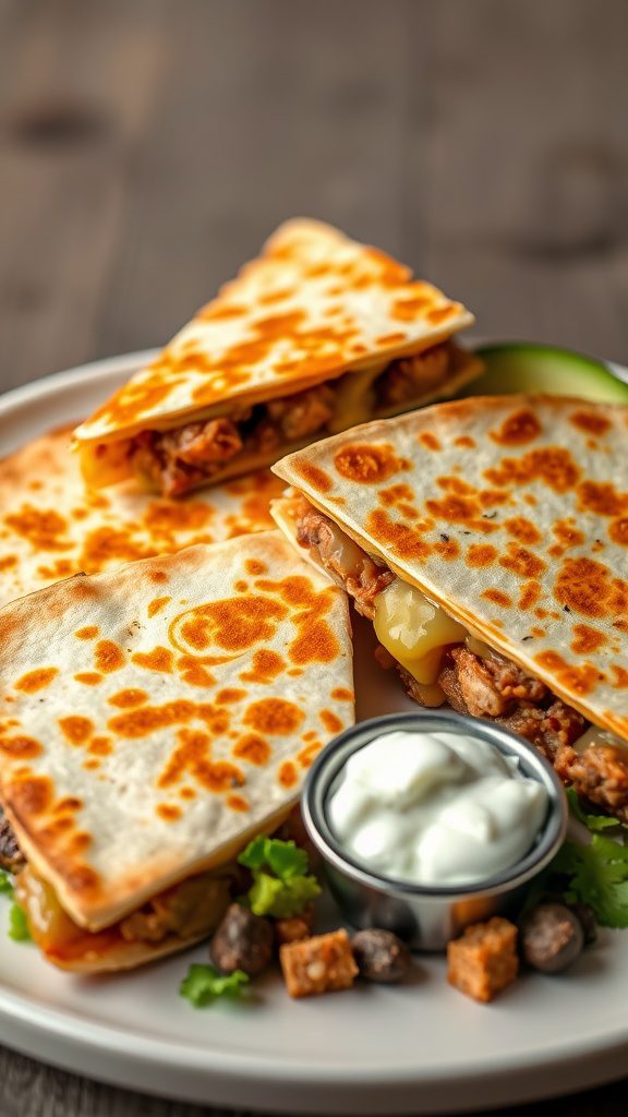 Beef quesadillas are a quick and satisfying meal that packs a punch of flavor. The combination of seasoned beef and melted cheese between crispy tortillas makes this dish a crowd-pleaser. Perfect for busy weeknights, these quesadillas are simple to whip up and can easily be customized with your favorite toppings and sides.