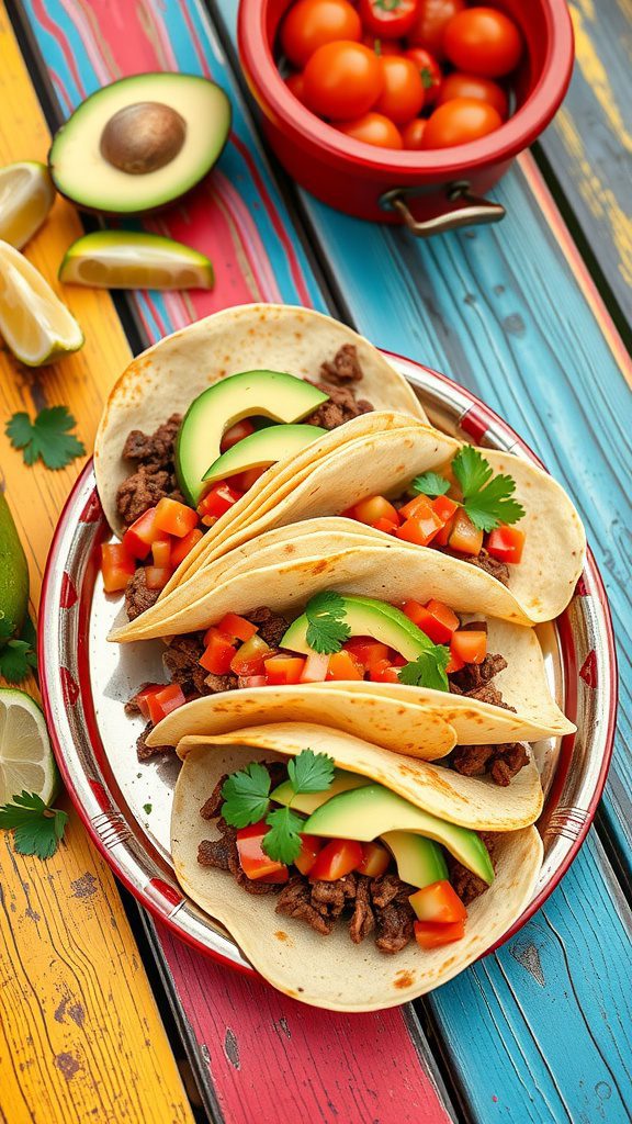 - Assemble the Tacos: Warm the tortillas in a dry skillet or microwave. Spoon the seasoned beef into each tortilla, top with fresh salsa, and add avocado slices.