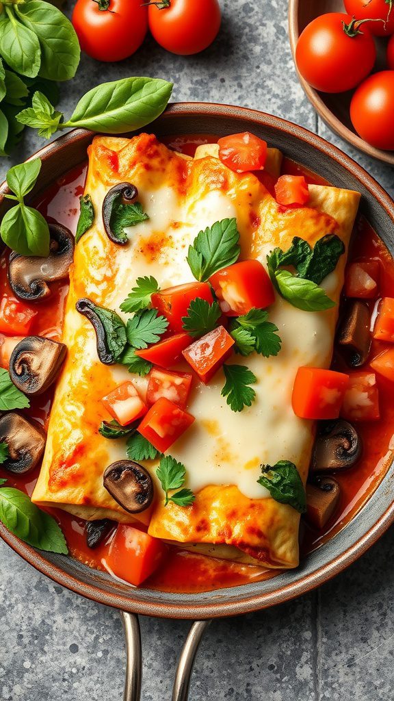 - Garnish with fresh cilantro before serving. Enjoy your delicious Mushroom and Spinach Enchiladas!