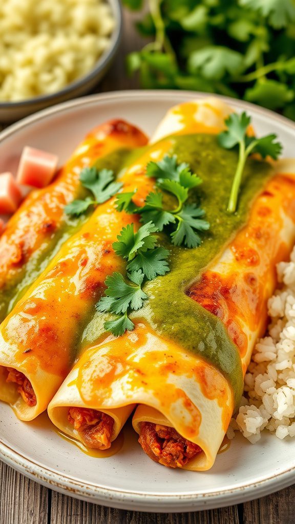 The combination of spicy chicken and the tangy green sauce creates a delightful contrast that you’ll want to savor. Plus, it’s a flexible recipe, allowing you to adjust the heat to your liking. Serve these enchiladas with rice and beans for a complete meal!