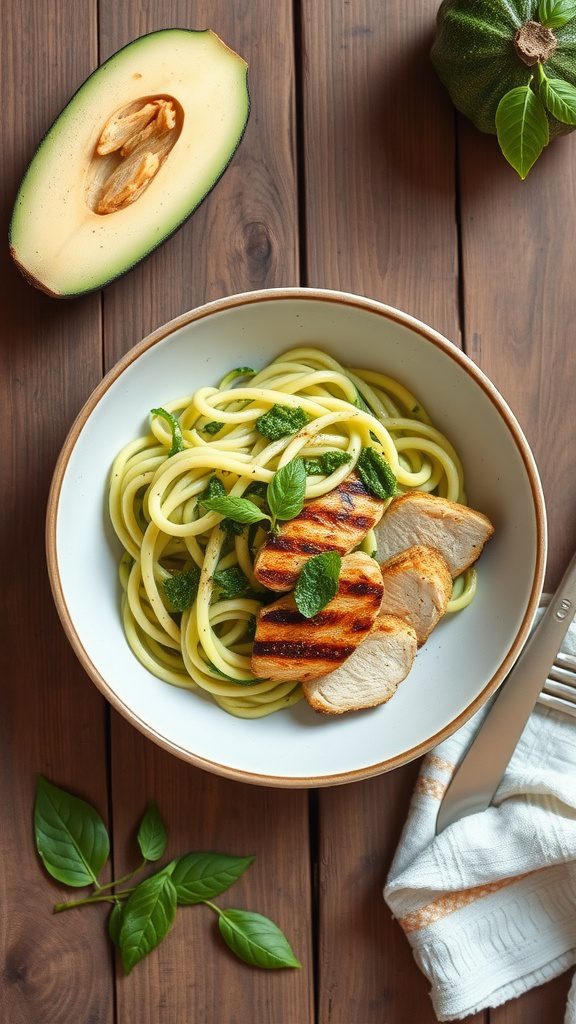 - Serve: Plate the zucchini noodles and top with sliced grilled chicken. Garnish with fresh basil leaves.