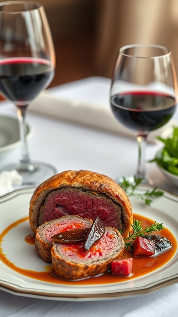 Beef Wellington is a classic choice for Valentine’s dinner that never disappoints. The flaky pastry wrapped around perfectly cooked beef and paired with rich red wine reduction makes it truly special. This dish is not just a meal; it’s a way to show your love and create a memorable evening.