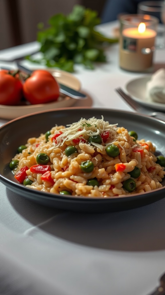 If you’re looking for a cozy dinner, vegetable risotto is a perfect choice. Creamy and comforting, it brings together fresh veggies and rich Parmesan for a delicious dish. Pair it with a glass of wine, and you’ve got a lovely evening ahead!