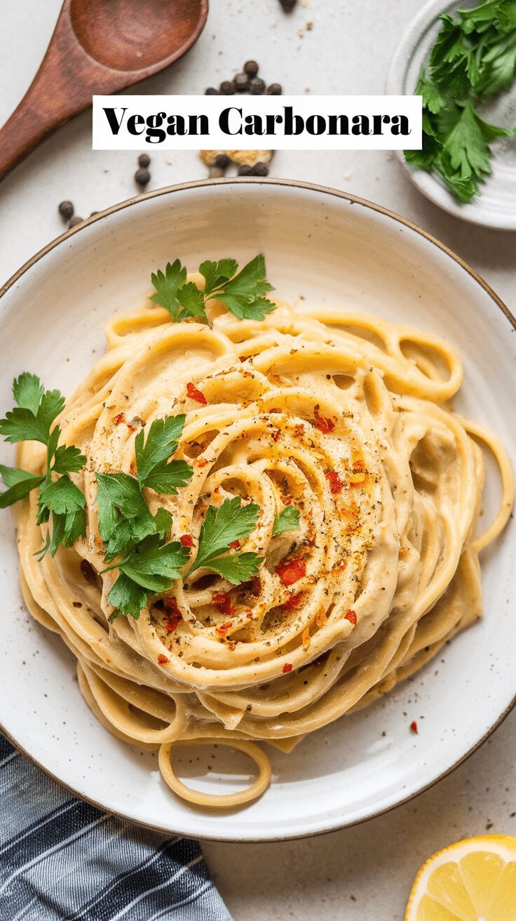 - Serve Immediately: Plate the Vegan Carbonara while it’s hot to enjoy the optimal texture and flavors.